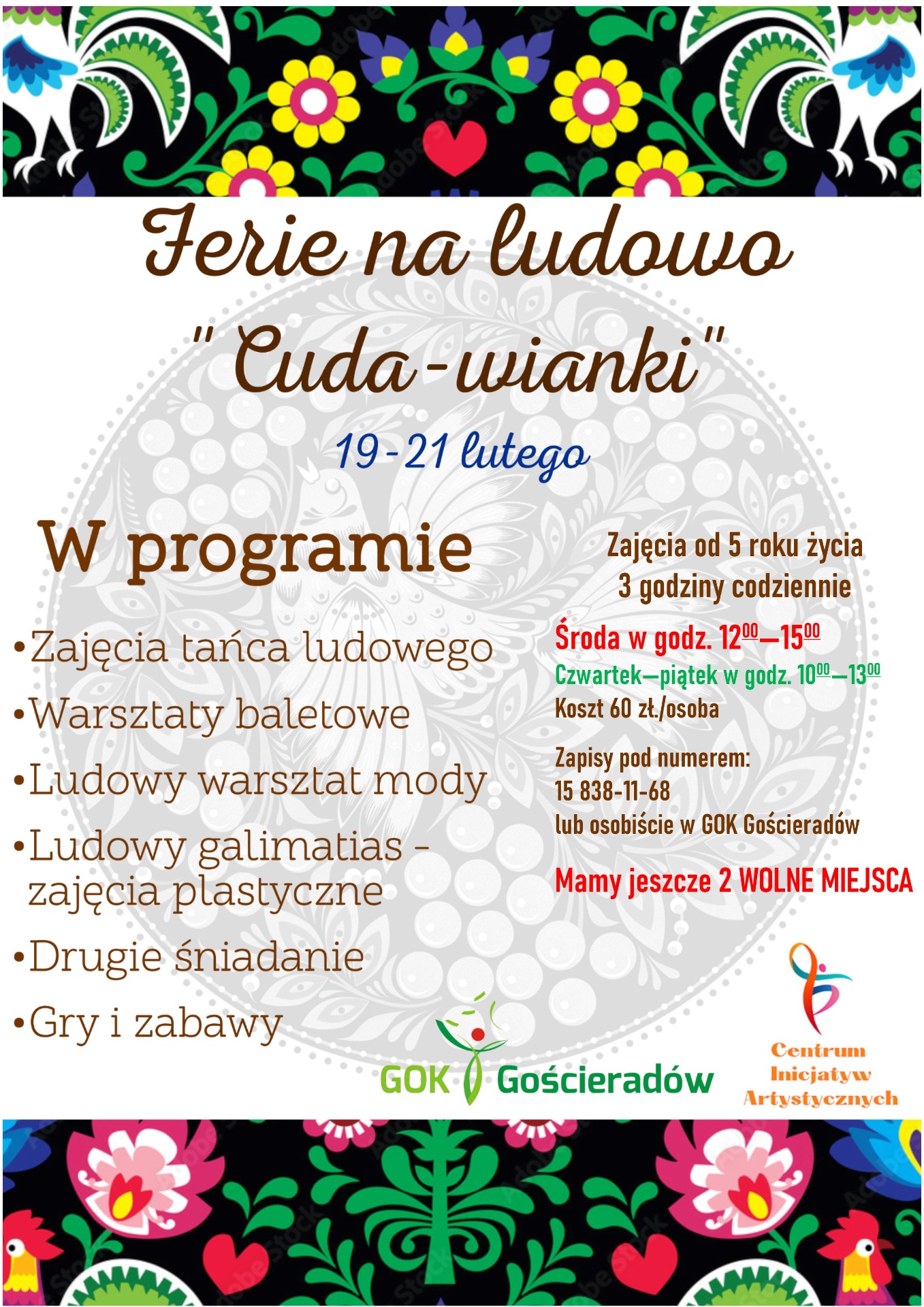 - Od środy do piątku zaczynamy Ferie na ludowo pod hasłem "Cuda - wianki"