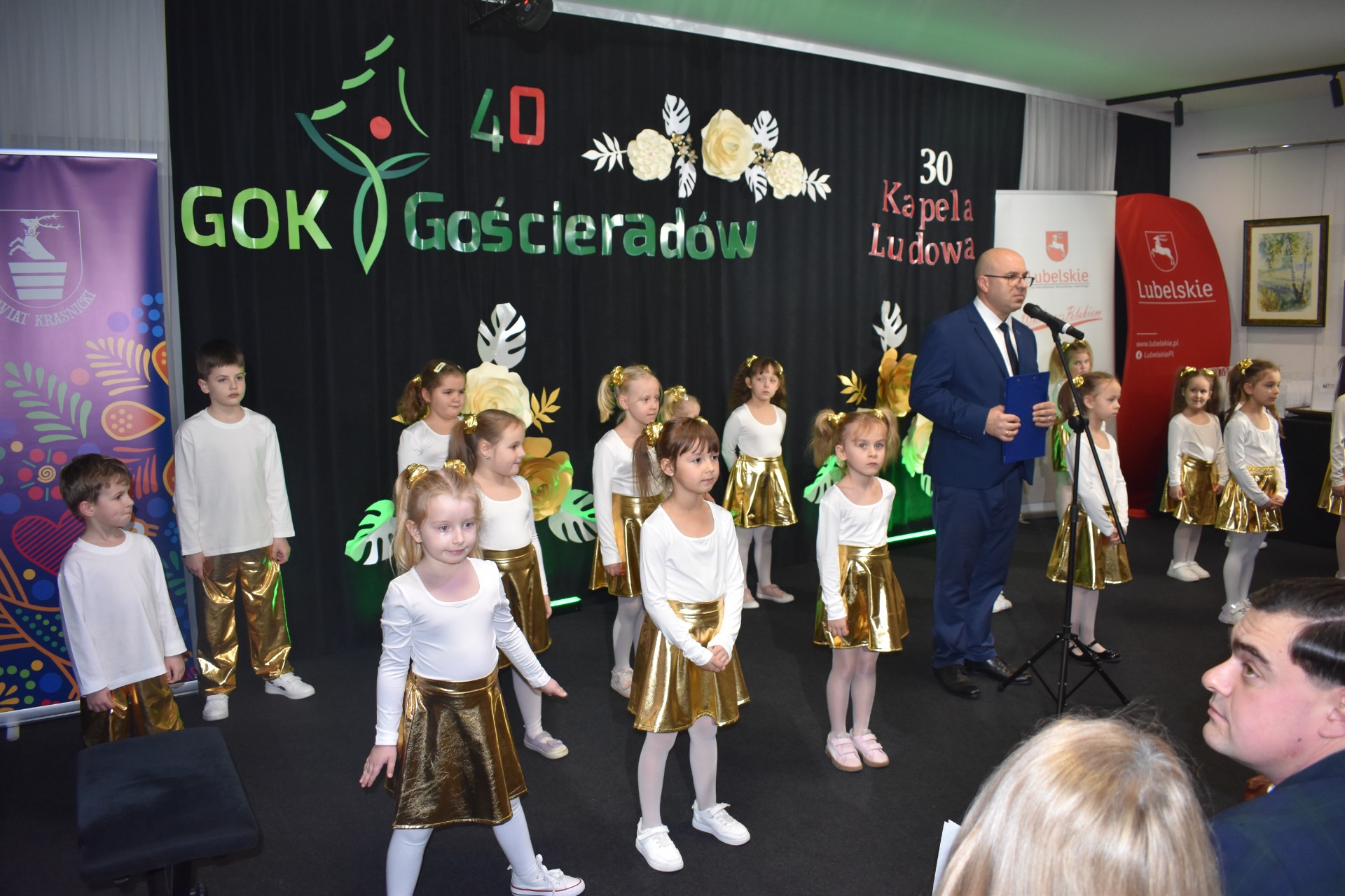 Szczególny ton miało także wystąpienie Wójta Gminy Gościeradów Mariusz Szczepanik, który wraz ze swoimi najbliższymi współpracownikami – Zastępcą Wójta, Sekretarzem oraz Skarbnikiem Gminy i kierownikiem OPS – podkreślił ogromny, wieloletni wkład Gminnego Ośrodka Kultury i Kapeli Ludowej w rozwój życia kulturalnego gminy. W swoim wystąpieniu zaznaczył również, że jubileusz jest wyjątkowym dniem nie tylko dla instytucji, lecz także dla jej dyrektora – Romana Bissa, obchodzącego 20-lecie swojej pracy w kulturze.