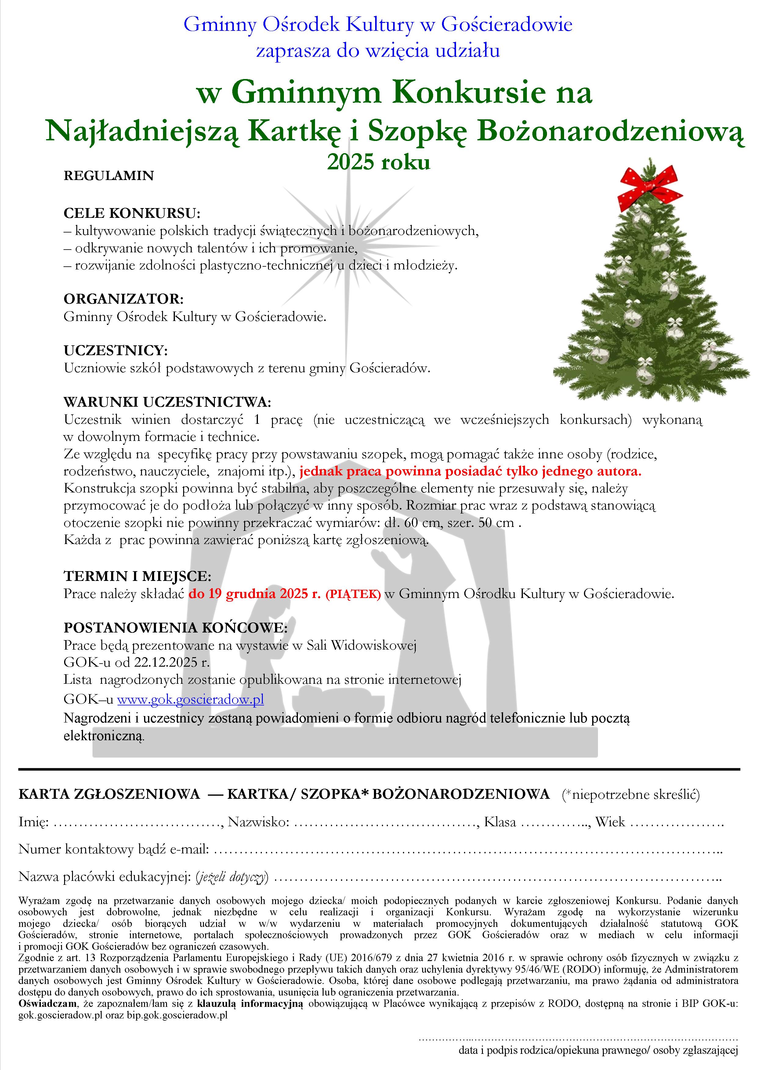 Prace konkursowe należy dostarczyć do siedziby GOK w Gościeradowie